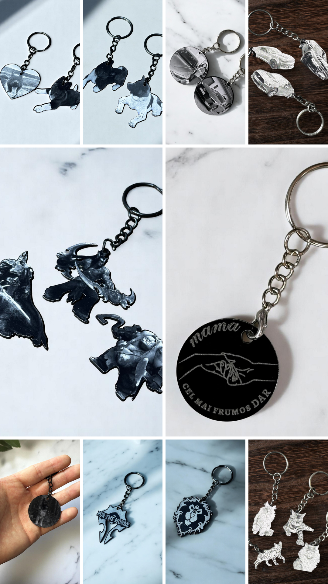 Disponibile în diferite forme (rotund, inimă, pătrat, lacrimă etc.), aceste brelocuri devin cadouri cu suflet sau accesorii de zi cu zi care spun o poveste.